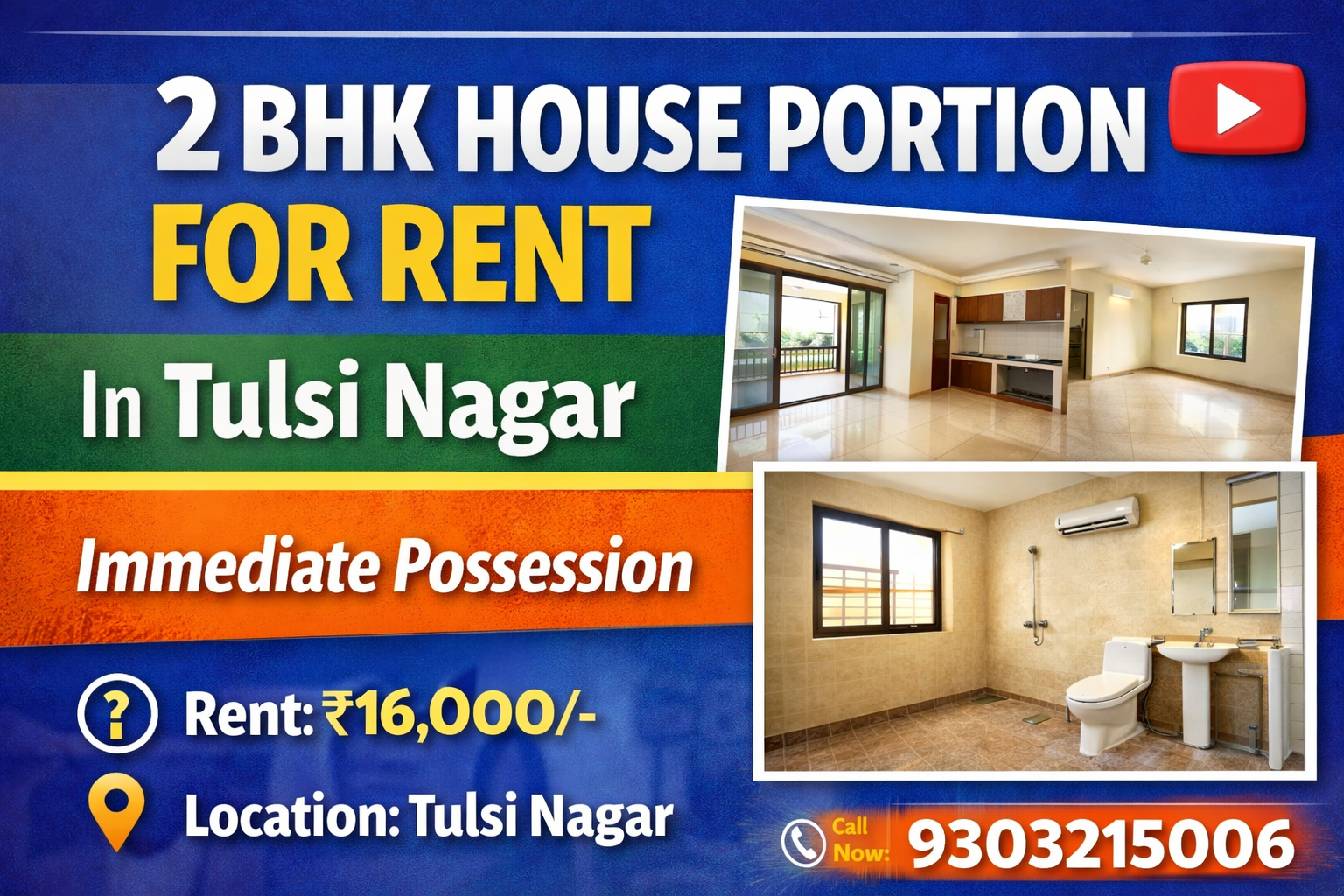 💰 Rent: ₹16,000/- per month 📍 Location: Tulsi Nagar