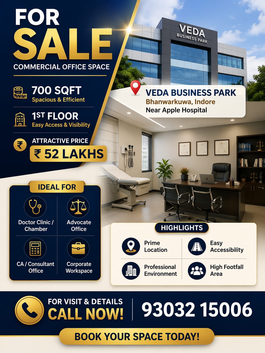 700 Sqft Office for Sale @52 Lakhs | Veda Business Park Bhanwarkuwa Indore | Prime Commercial Space