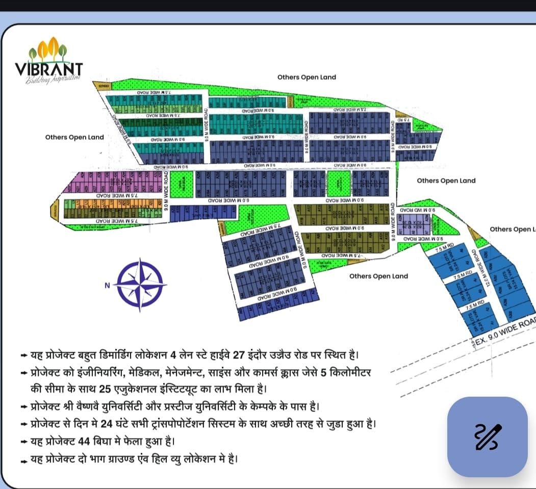 Welcome to Vibrant Hill View, an exclusive plotted development nestled along the fast-developing Ujjain Road corridor, near Ringnodiya, Indore. Designed for those who seek both peace and convenience, this thoughtfully planned township offers a perfect balance of nature, connectivity, and future-ready infrastructure.